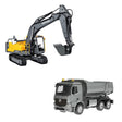Bu, E568-003 RC ekskavatörün güncellenmiş versiyonudur. Dişliler dahil yeni metal parçalar bu ekskavatörü dayanıklı kılarken, hafif gövdesi dayanıklı ABS plastikten yapılmıştır. Kamyonlar plastikten yapılmıştır ancak zorlu koşullarda koruma sağlamak için çift katmanlı olduklarından mükemmel dayanıklılığa sahiptirler. RC Volvo ekskavatörlerinin yeni versiyonu, bom/kova metal vidalı tahrik sistemi de dahil olmak üzere birçok metal elemandan yapılmıştır. Bu kazıcı aynı zamanda mükemmel denge için arkaya monte edilmiş karşı ağırlık plakalarına da sahiptir; bunların tümü iki güçlü motorla çalıştırılır. Ekskavatörün akıllı yapısı, kıskaç ve hummer gibi değiştirilebilir aletlerin eklenmesiyle daha fazla uzaktan kumanda eğlencesine olanak tanır. Orijinal bir Volvo makinesi gibi hissettiren çalışma ışıkları ve seslerle donatılmıştır!